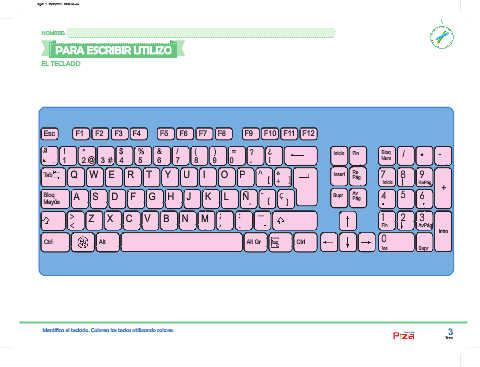 Identifica el teclado. Colorea las teclas utilizando colores. 3