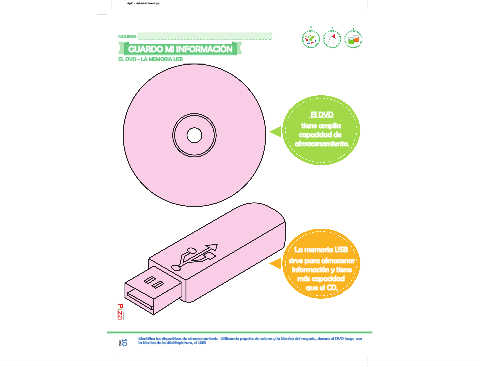 Identifica los dispositivos de almacenamiento. Utilizando papeles de colores y la técnica del rasgado, decora el DVD luego con