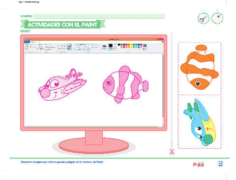 12.pdf 1 18/05/2018 04:49:20 p.m. NOMBRE: ACTIVIDADES CON EL PAINT PAINT Recorta la imagen que más te agrade y pégala en la ventana de Paint. 12 ediciones Doce