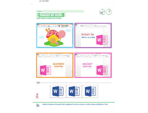 Recorta las imágenes de la parte inferior y pégalas en las ventanas en las que se están realizando actividades en Word.