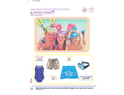 Talk about the summer season, crumple up crepe paper into little balls to decorate the frame. Learn the name of the clothes.