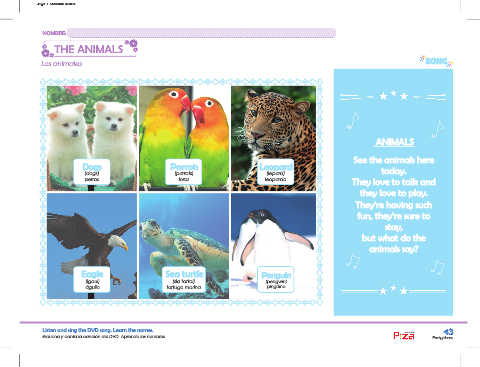 Listen and sing the DVD song. Learn the names. 43