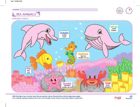 Con ayuda de tu profesora aprende el nombre de los animales marinos. Decora los animales utilizando papel crepé. Forty seven