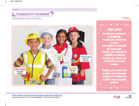 Listen and learn the name of the community workers. Sing the DVD song. 48