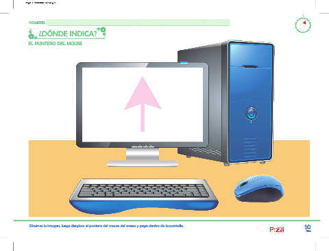 10.pdf 1 12/05/2018 12:51:41 p. m. NOMBRE: ¿DÓNDE INDICA? EL PUNTERO DEL MOUSE Observa la imagen, luego desglosa el puntero del mouse del anexo y pega dentro de la pantalla. 10 ediciones Diez