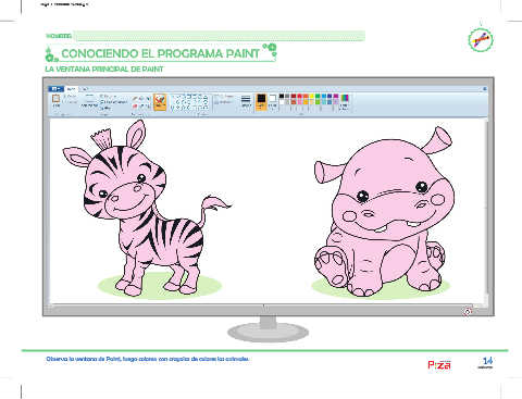 Observa la ventana de Paint, luego colorea con crayolas de colores los animales. 14
