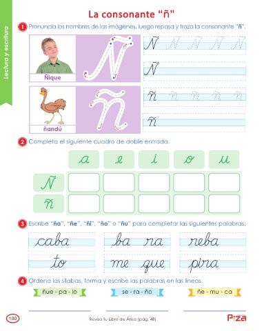 1 Pronuncia los nombres de las imágenes, luego repasa y traza la consonante “ñ”.