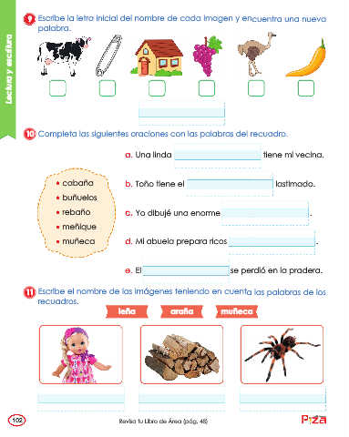 9 Escribe la letra inicial del nombre de cada imagen y encuentra una nueva