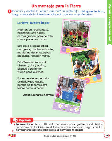 La tierra, nuestro hogar Expresión y comprensión oral