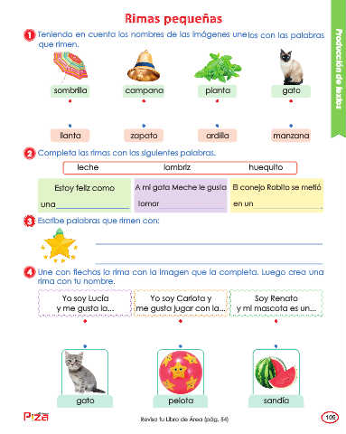 4 Une con flechas la rima con la imagen que la completa. Luego crea una