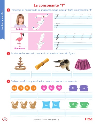 1 Pronuncia los nombres de las imágenes, luego repasa y traza la consonante “f”.