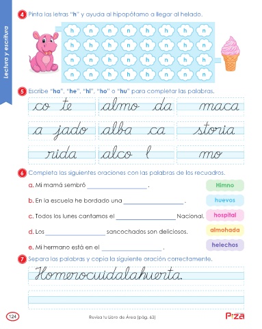 4 Pinta las letras “h” y ayuda al hipopótamo a llegar al helado. n
