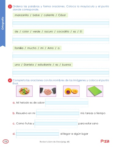 3 Ordena las palabras y forma oraciones. Coloca la mayúscula y el punto