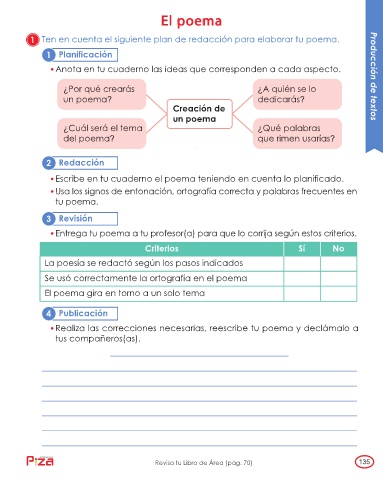 1 Ten en cuenta el siguiente plan de redacción para elaborar tu poema.