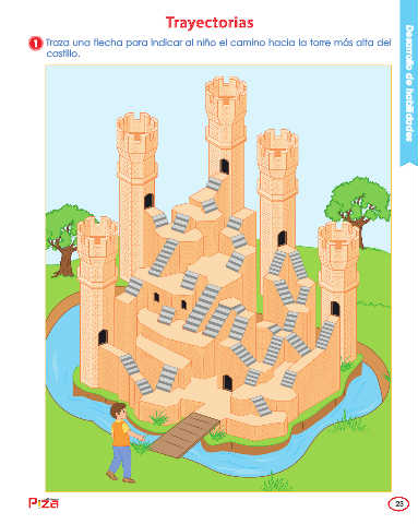 Trayectorias 1 Traza una flecha para indicar al niño el camino hacia la torre más alta del castillo. Desarrollo de habilidades ediciones 23