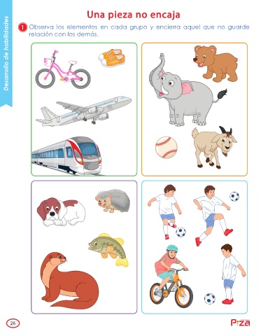 Una pieza no encaja Desarrollo de habilidades relación con los demás. 1 Observa los elementos en cada grupo y encierra aquel que no guarde Bicimaster 26 ediciones
