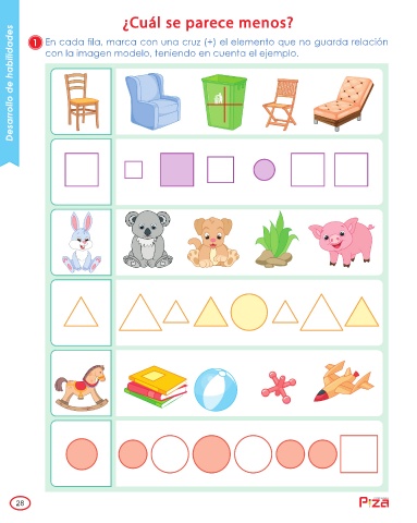 1 En cada fila, marca con una cruz (+) el elemento que no guarda relación