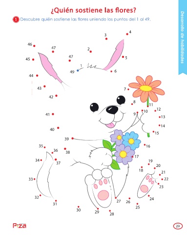 1 Descubre quién sostiene las flores uniendo los puntos del 1 al 49.