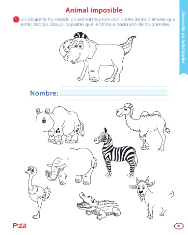están debajo. Dibuja las partes que le faltan a cada uno de los animales. Desarrollo de habilidades