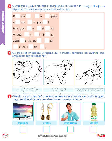 4 Completa el siguiente texto escribiendo la vocal “e”. Luego dibuja un