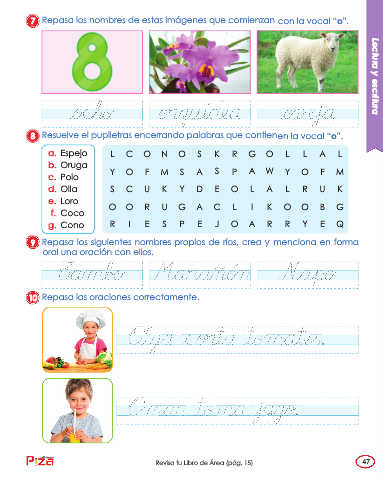 7 Repasa los nombres de estas imágenes que comienzan con la vocal “o”. Lectura y escritura