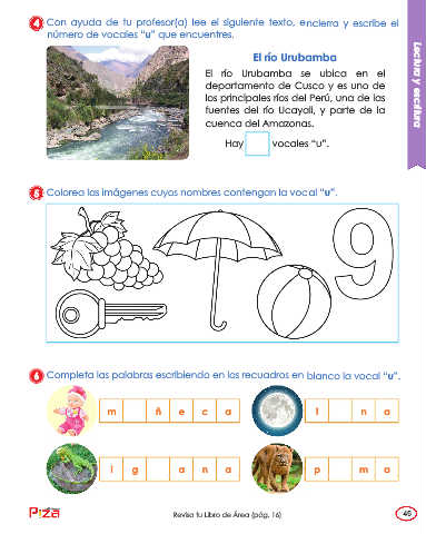6 Completa las palabras escribiendo en los recuadros en blanco la vocal “u”.