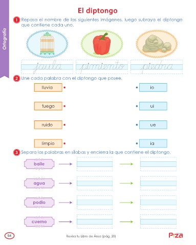 1 Repasa el nombre de las siguientes imágenes, luego subraya el diptongo
