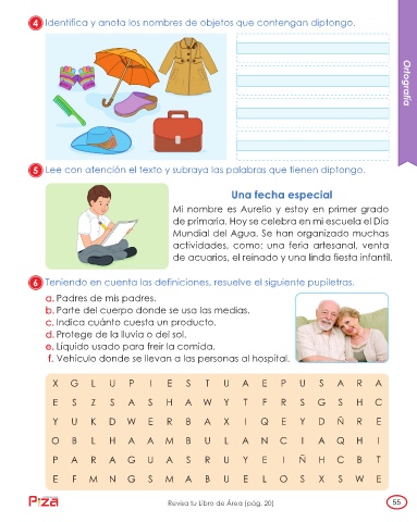 4 Identifica y anota los nombres de objetos que contengan diptongo. Ortografía