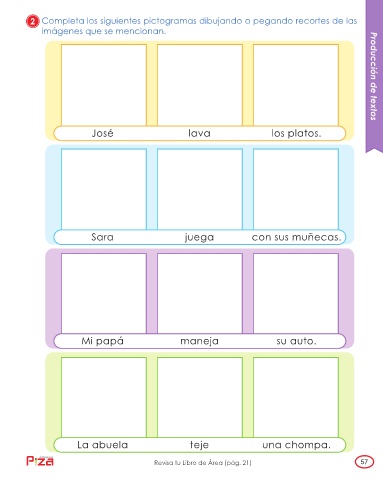 2 Completa los siguientes pictogramas dibujando o pegando recortes de las