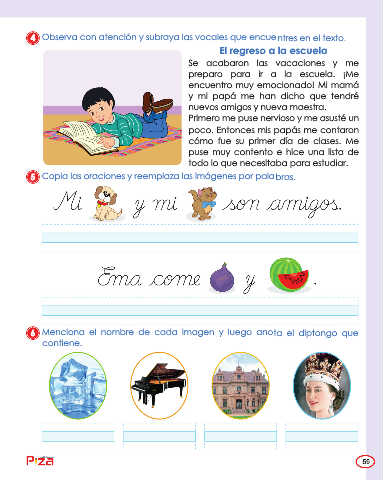 6 Menciona el nombre de cada imagen y luego anota el diptongo que