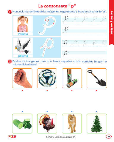 1 Pronuncia los nombres de las imágenes, luego repasa y traza la consonante “p”.