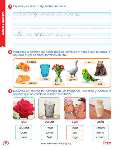 8 Pronuncia el nombre de cada imagen, identifica y marca con un aspa (X)