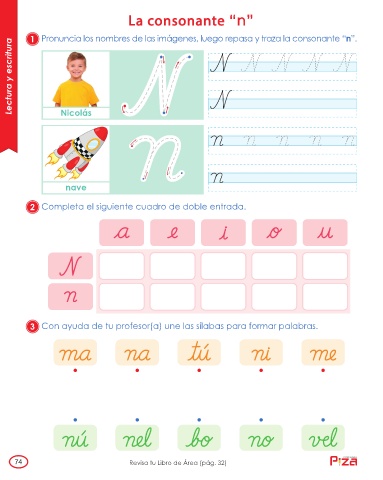 1 Pronuncia los nombres de las imágenes, luego repasa y traza la consonante “n”.