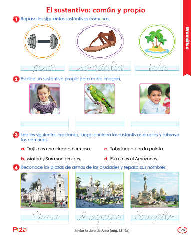 1 Repasa los siguientes sustantivos comunes. Gramática