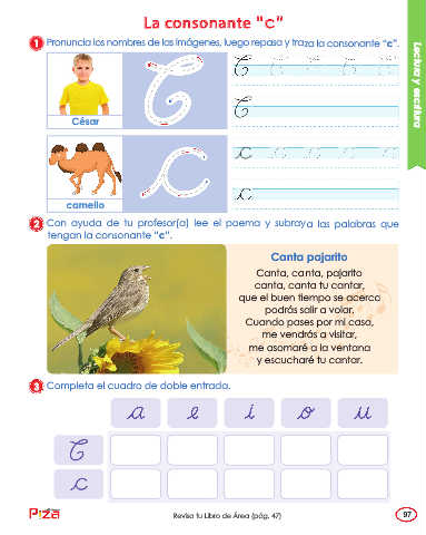1 Pronuncia los nombres de las imágenes, luego repasa y traza la consonante “c”.