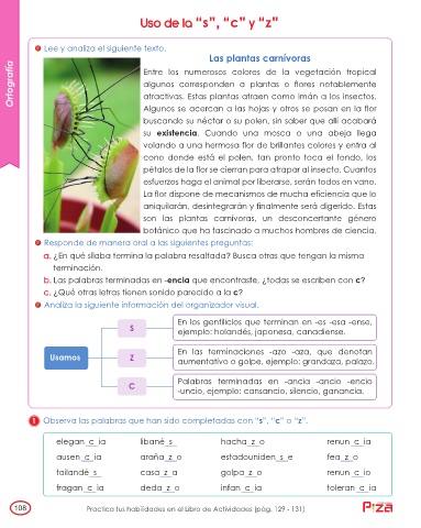 1 Observa las palabras que han sido completadas con “s”, “c” o “z”.