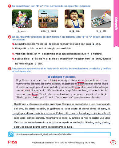 2 En las siguientes oraciones se completaron las palabras con “b” o “v” según las reglas
