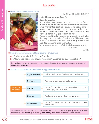 Lugar y fecha Indica cuándo y dónde se escribe la carta.
