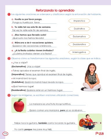 3 Según las imágenes, se escriben oraciones utilizando conectores.