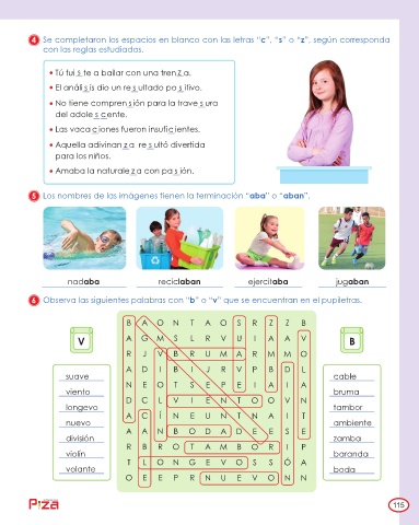 6 Observa las siguientes palabras con “b” o “v” que se encuentran en el pupiletras.