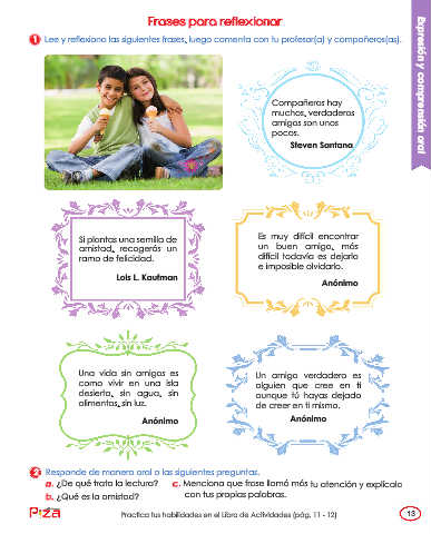 1 Lee y reflexiona las siguientes frases, luego comenta con tu profesor(a) y compañeros(as).