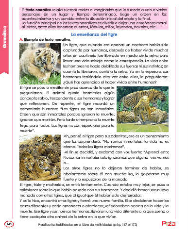 Gramática A. Ejemplo de texto narrativo. La enseñanza del tigre