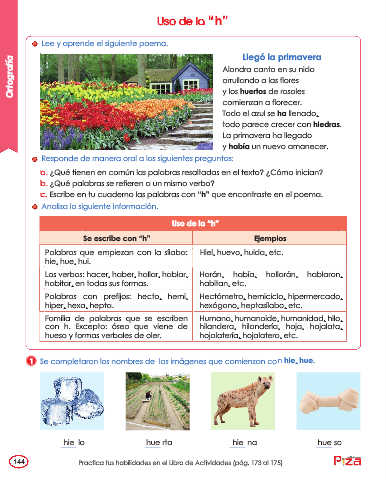 c. Escribe en tu cuaderno las palabras con “h” que encontraste en el poema.
