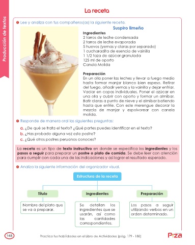 Lee y analiza con tus compañeros(as) la siguiente receta.