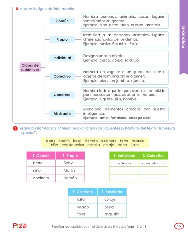 1 Según la información anterior, se clasificaron los siguientes sustantivos del texto “Travesura