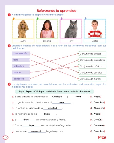 2 Utilizando flechas se relacionaron cada uno de los sustantivos colectivos con sus