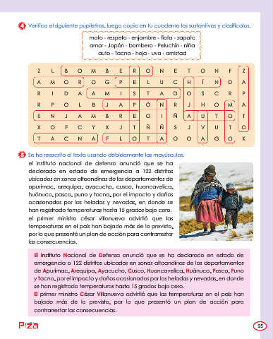 4 Verifica el siguiente pupiletras, luego copia en tu cuaderno los sustantivos y clasifícalos.