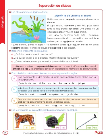 Lee y pronuncia las siguientes palabras separándolas en sílabas.