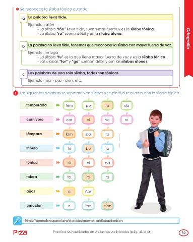 1 Las siguientes palabras se separaron en sílabas y se pintó el recuadro con la sílaba tónica.