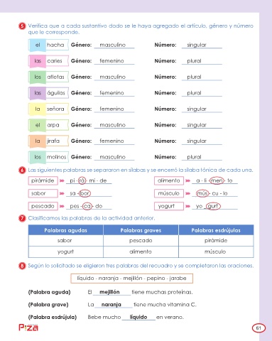 5 Verifica que a cada sustantivo dado se le haya agregado el artículo, género y número